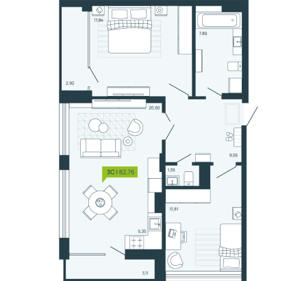 предусмотрен большой выбор планировочных решений с комнатами правильной формы,
